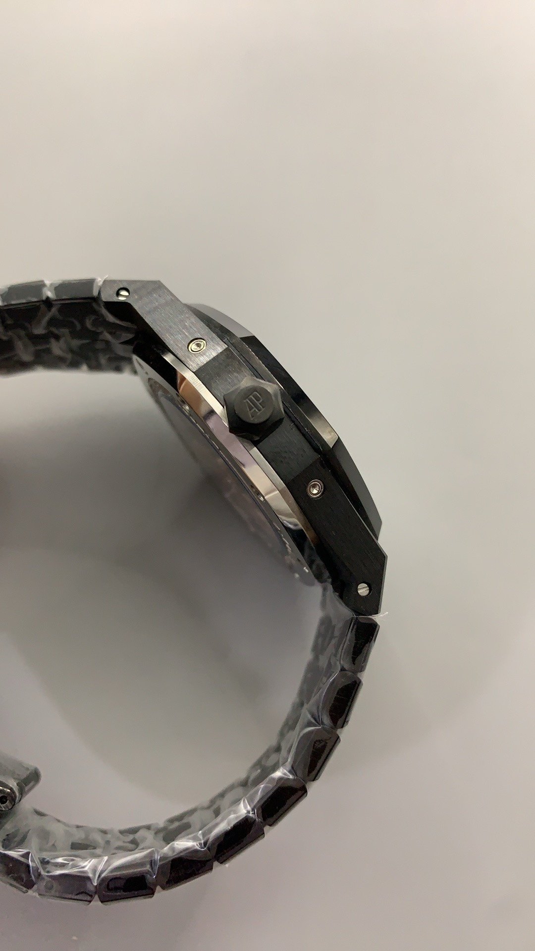Audemars Piguet Royal Oak Perpetual Calendar 26579CE.OO.1225CE.01 Super Clone is a 41mm black ceramic watch with aย matching ceramic bracelet and a titanium AP folding clasp mechanism. Royal Oak Super Clone offers strength and lightweight comfort.