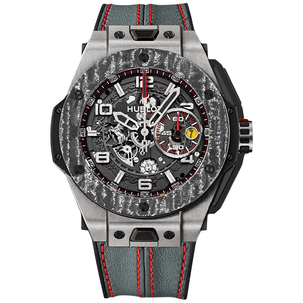 Hublot Big Bang Ferrari Carbon Super Clone is the luxury collaboration of Ferrari and Hublot. The head-turning watch is a limited-edition watch delivering a bold, distinctive design and innovative materials. Hublot Big Bang Super Clone is the symbol of luxury and a perfect watch for Hublot and Ferrari lovers.