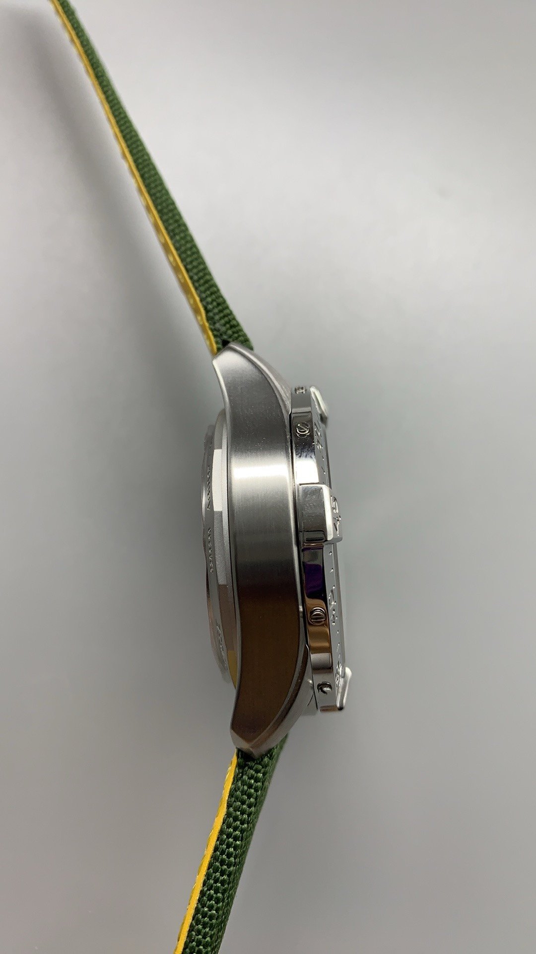 - Dial: Military-inspired green color, luminous hands and markers, and three chronograph subdials (1/4th second, 30 minutes, and 12 hours) for optimal legibility