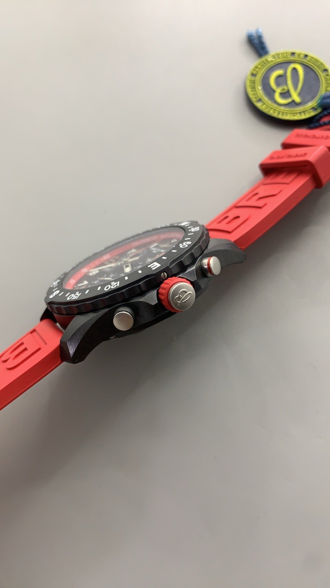 Breitling Endurance Pro Quartz Super Clone is a 38mm watch made from Breitlight composite material. Breitlight is a non-magnetic, hypoallergenic material and highly resistant to scratches and corrosion. The Super Clone gives a warm, textured, and grippy feel like the original. Breitling Super Clone has a composite bezel with compass markings and a red rubber strap for a sporty and adventurous appeal.