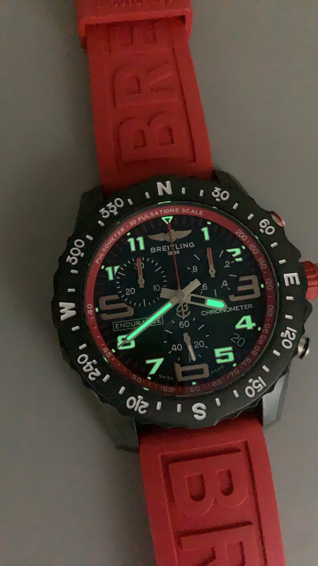 Conquer every adventure with the Breitling Endurance Pro Quartz Super Clone. Lightweight 38mm watch with a composite Breitlight case, a black dial with red accents running on a SuperQuartz 83 chronograph movement.