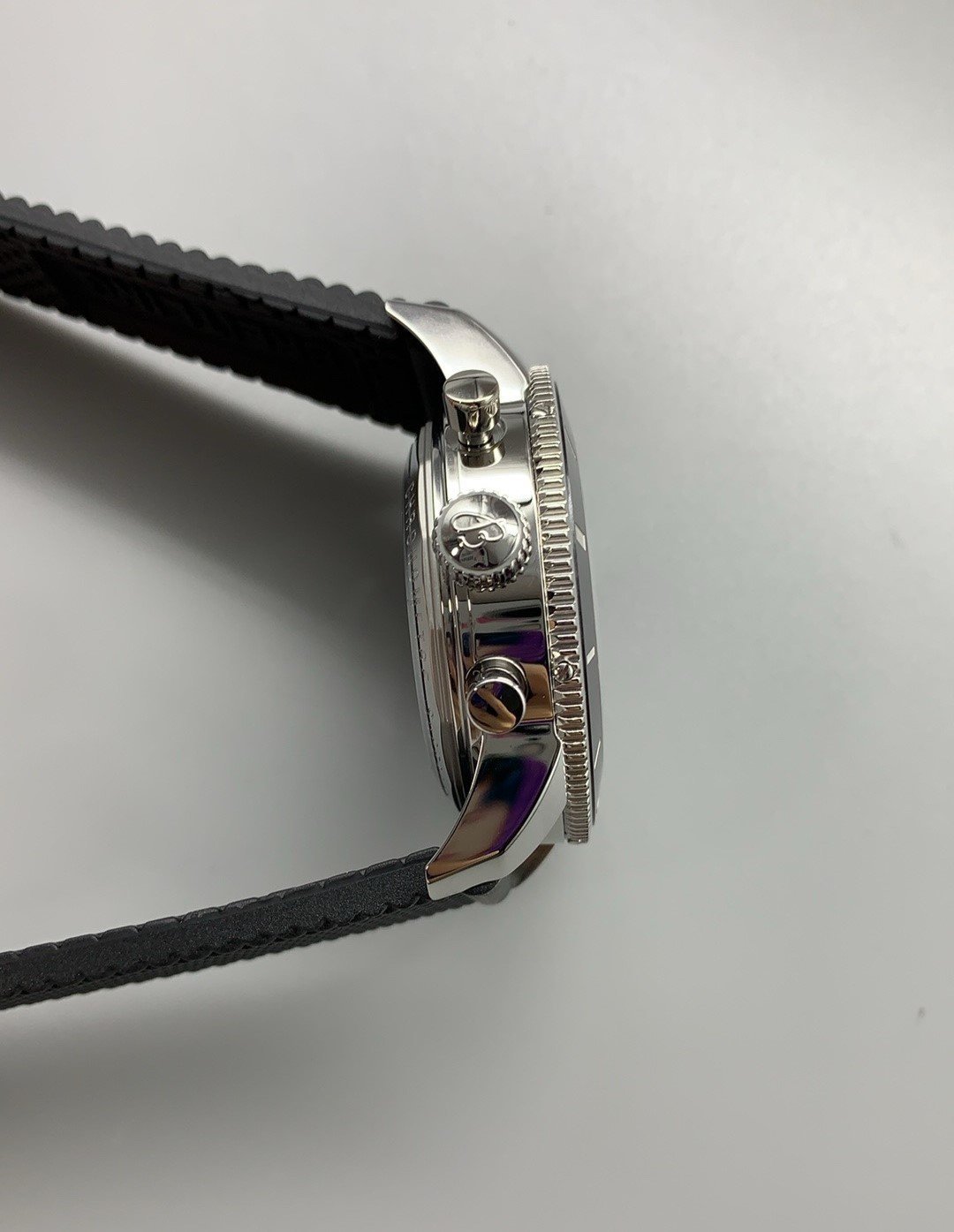• Function: Date window between 4 and 5 o’clock, 1/4th second, 30 minutes, and 12 hours chronograph subdials.