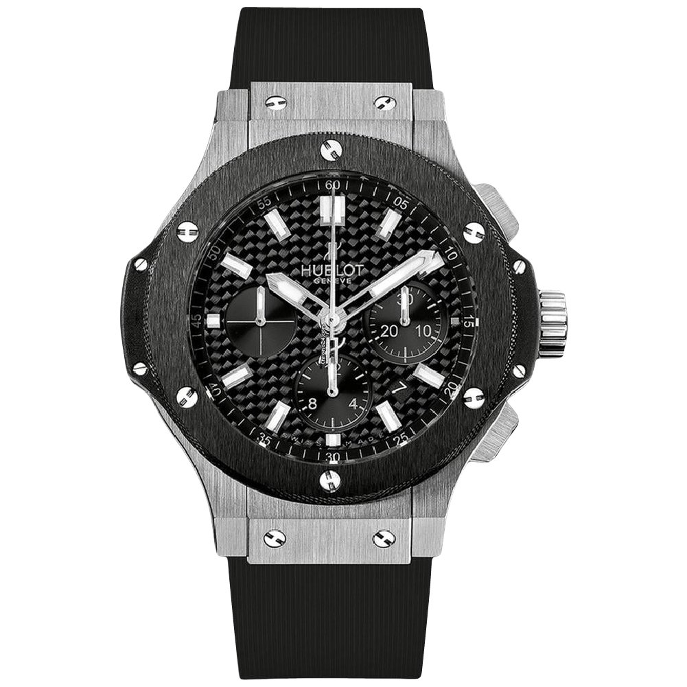 Command attention with the Bold Hublot Big Bang Super Clone. Featuring a 44mm stainless steel case and ceramic bezel with carbon-style dial detailing. The watch ensures precision with a 4100 caliber chronograph movement.