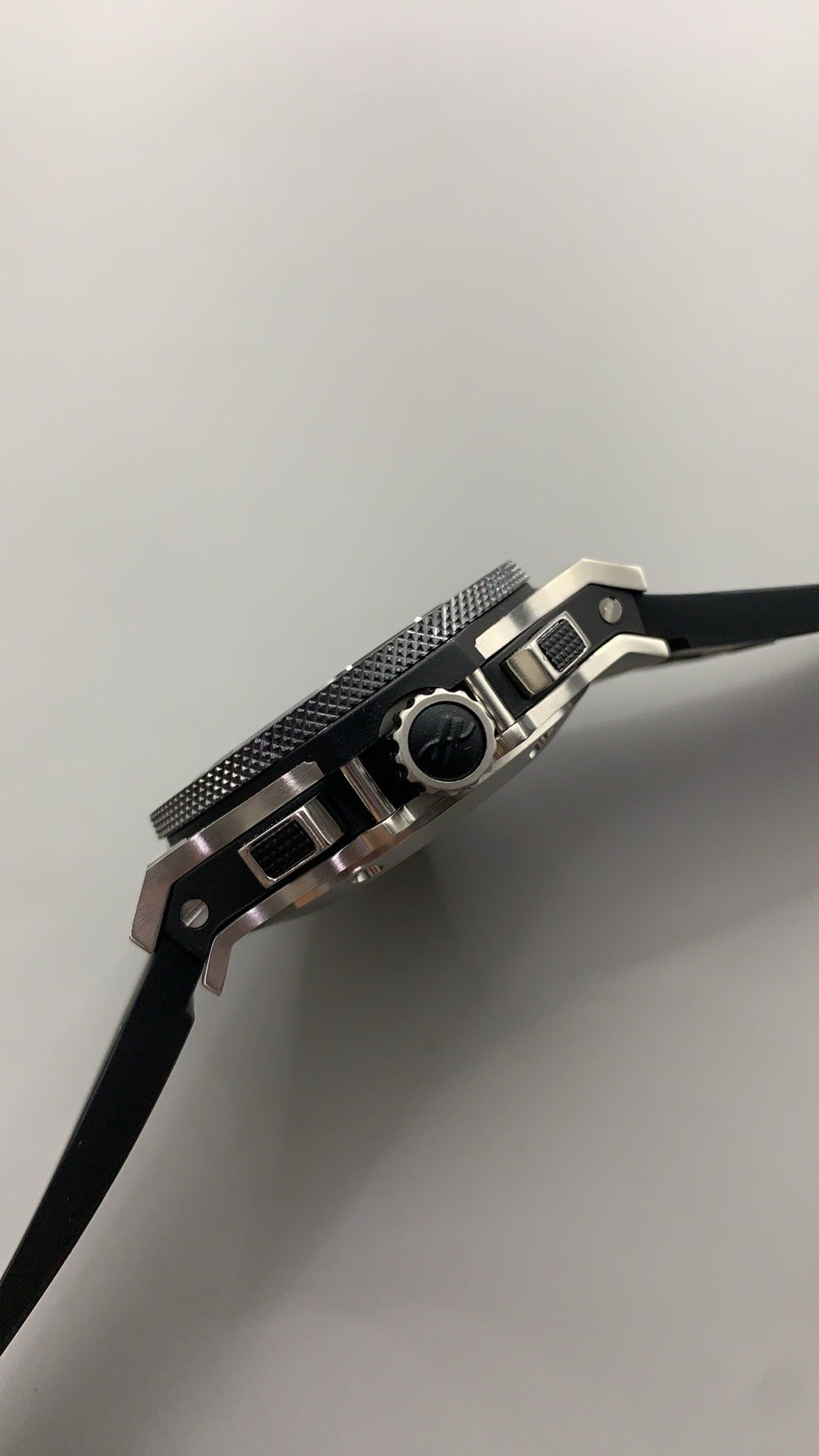 • Strap: Black rubber strap with stainless steel deployment buckle