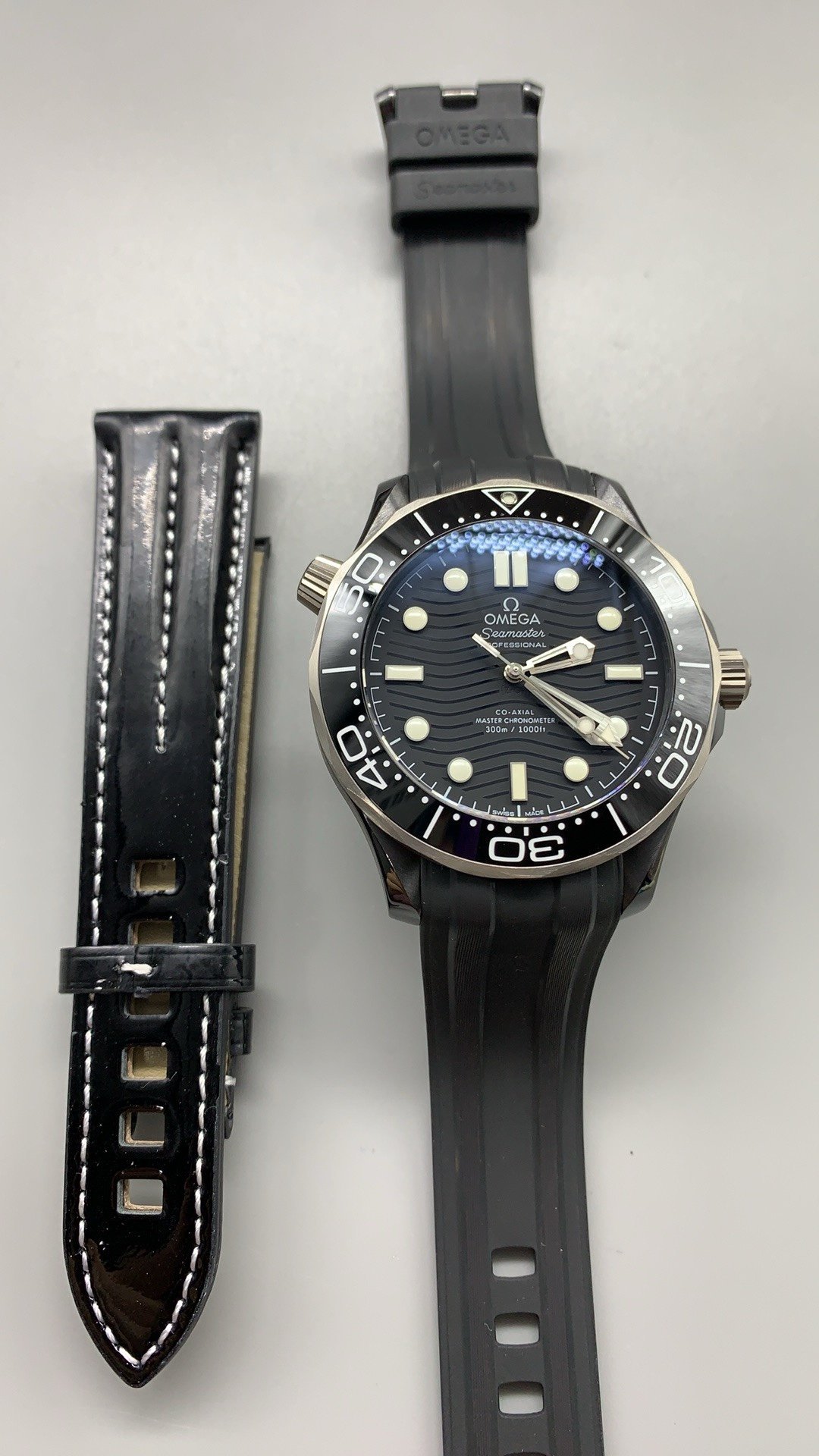 Seamaster Diver Super Clone comes with a black rubber strap and a stainless steel foldover clasp. The secure and comfortable watch drives on a Co-Axial self-winding movement, which can be seen through the sapphire-crystal case back.