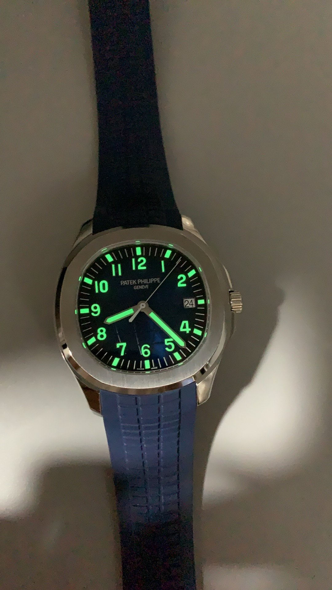 Patek Philippe Super Clone features an embossed dial graduated from black to night blue. The white gold Arabic numerals and hour hands with luminescent coating keep the time visible. Aquanaut Super Clone uses a self-winding mechanical movement to keep precise time. The complementing design, jumbo size, and beautiful colors give a sporty and sophisticated style to the watch.