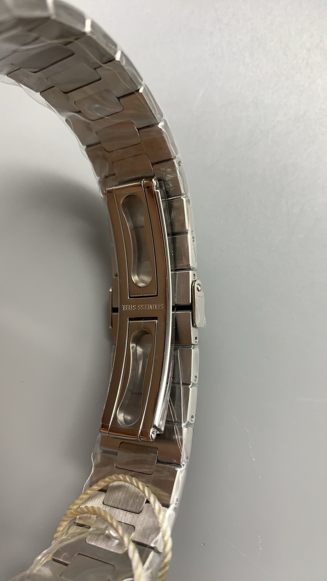 Patek Philippe Nautilus 5726/1A-014 Super Clone is a 40.5mm watch with a steel case and sapphire crystal back and top. This watch comes with a matching steel bracelet with a fold-over clasp.