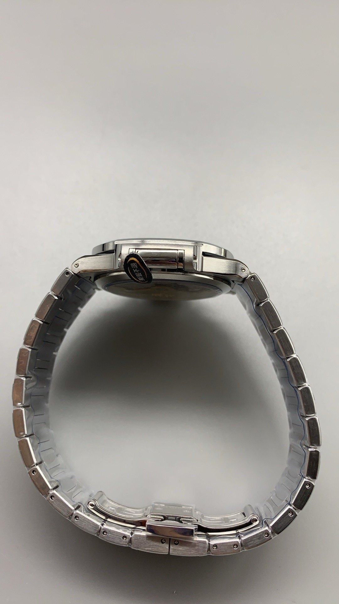 • Dial: Silver dial with embossed horizontal lines, luminescent hands and markers, and date window at 6 o’clock