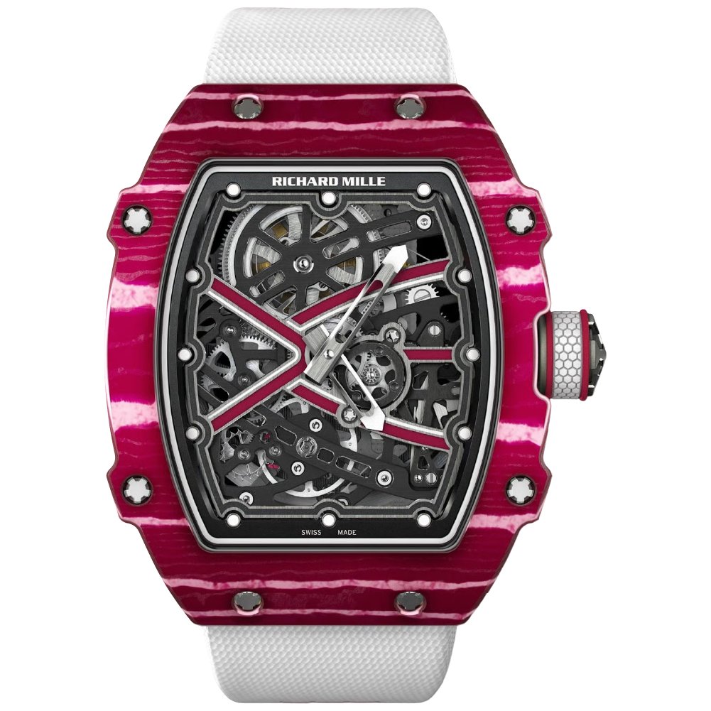 Richard Mille RM 67-02 is a sporty, incredibly light, and thin automatic sports watch. Richard Mille has paired this ultimate edition watch with an athlete. This model is designed for Qatari High Jump Olympian Mutaz Essa Barshim with the beautiful red and white of the Qatari flags.