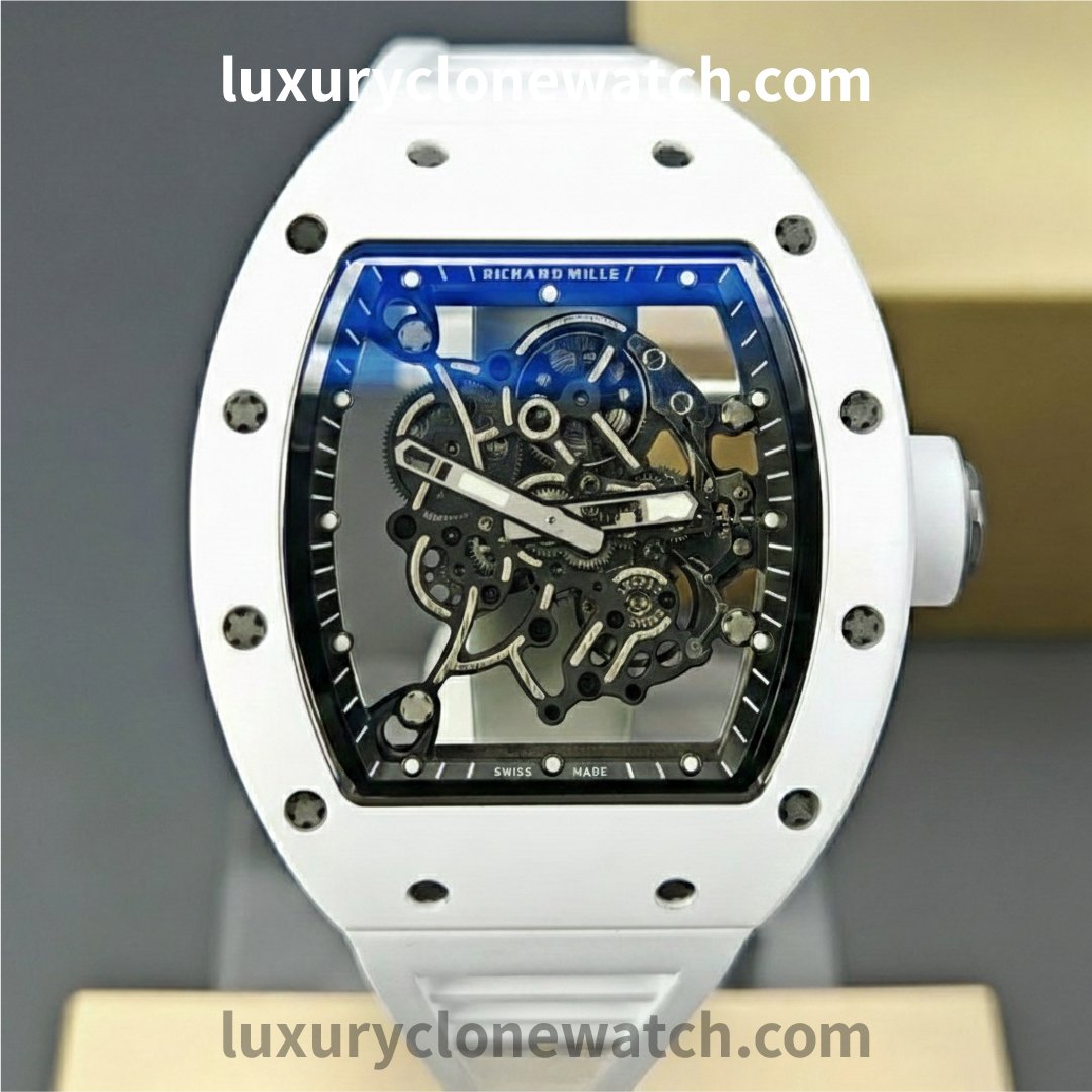 Richard Mille Super Clone Watches 1:1 RM 055 Ceramics Tourbillon White Strap