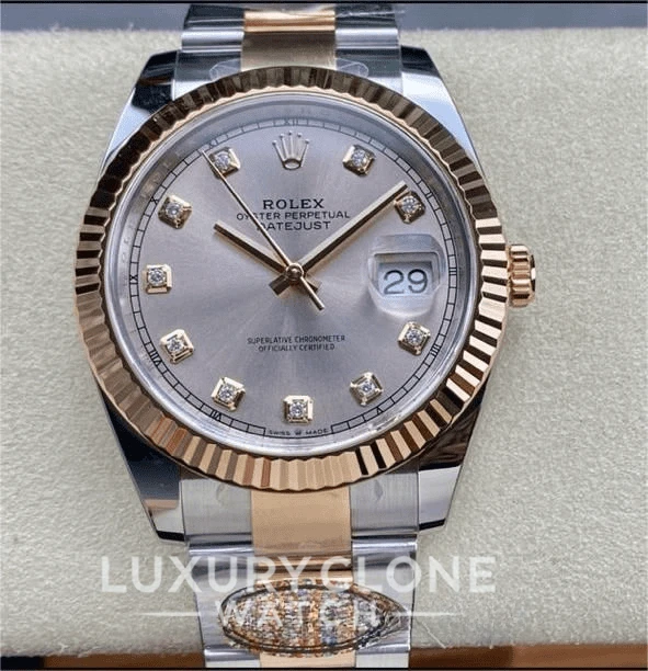 The Rolex Datejust Super Clone has a beautiful three-piece link Oystersteel and Everose Oysterclasp bracelet for a secure and comfortable fit. The watch runs on a perpetual mechanical, self-winding movement.