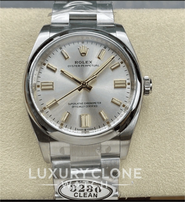 Elevate your dressy style with the Rolex Oyster Perpetual 124300 Super Clone. The 41mm Oystersteel watch features a beautiful silver dial and a Swiss self-winding 3230 movement, making it perfect for daily wear.
