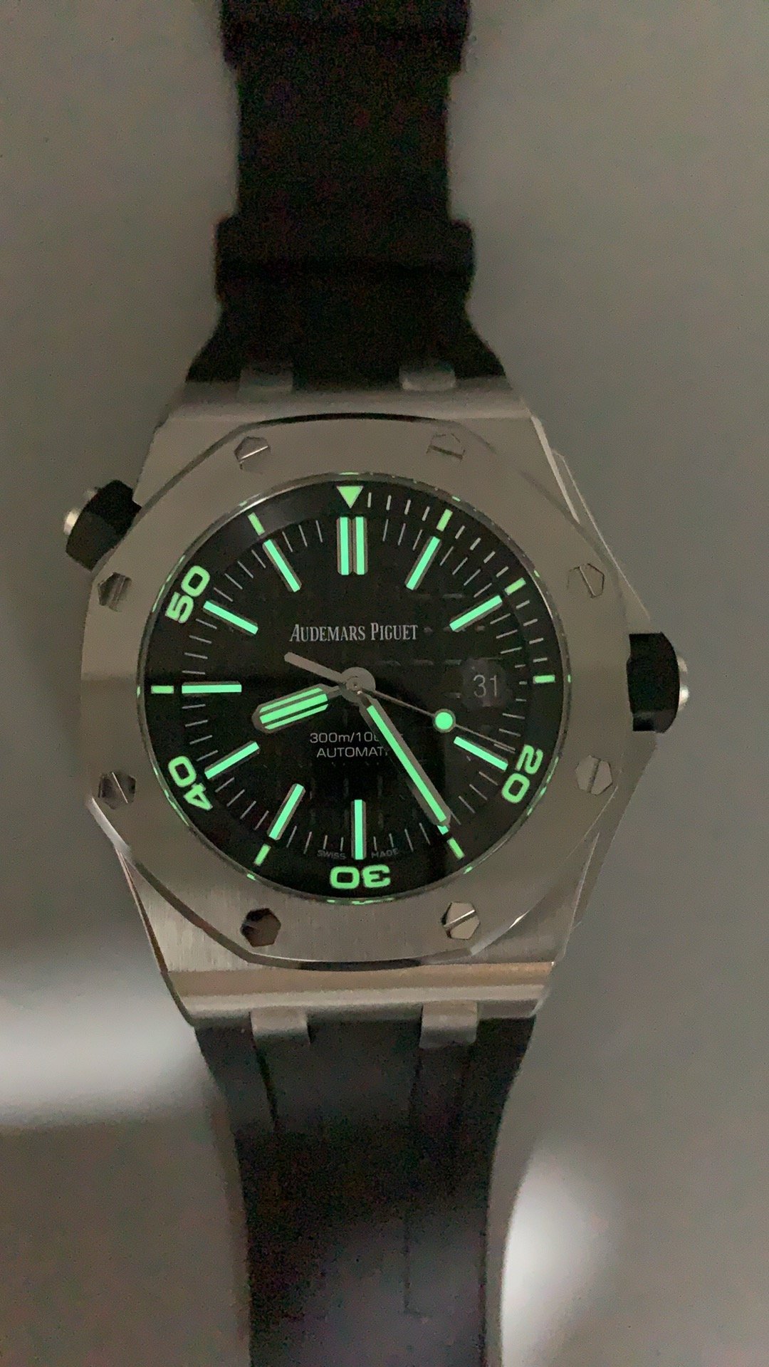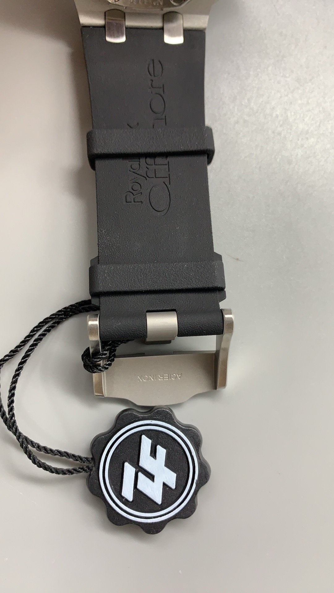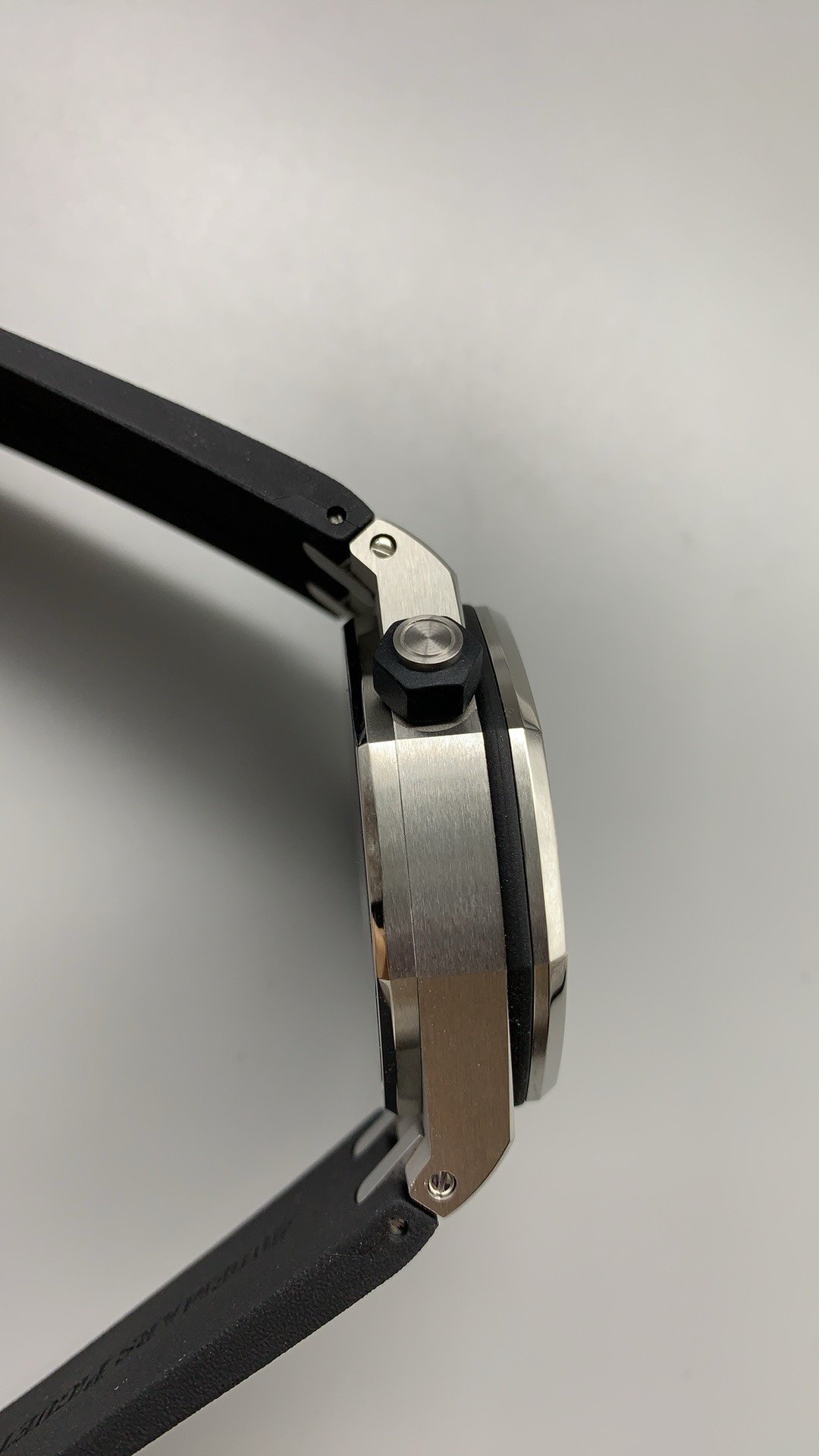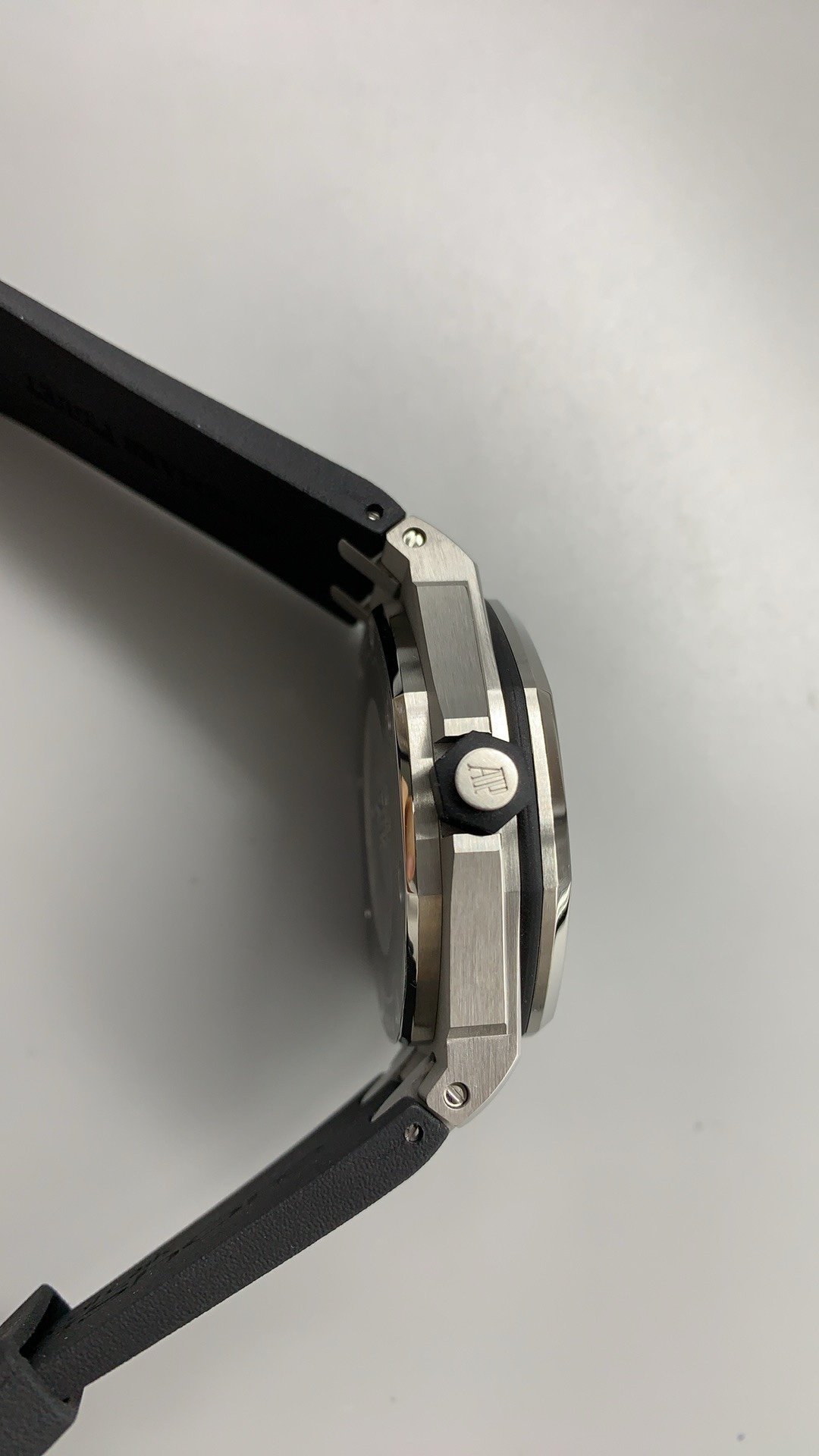 Royal Oak Offshore Diver 15710ST Super Clone features a 42mm stainless steel case with a glareproof sapphire crystal top and case back. The black rubber strap ensures a comfortable and secure fit with its stainless steel pin buckle.